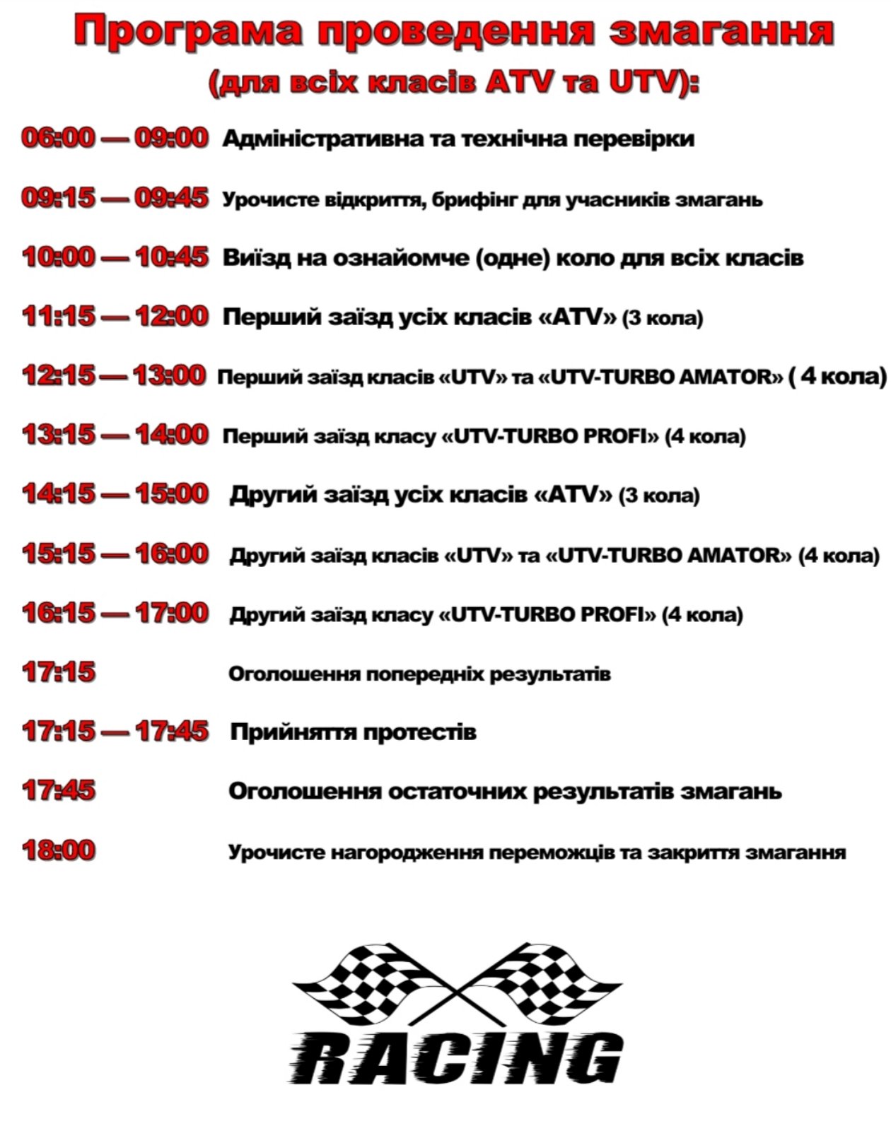 «UTV» – учасники від 16 років, беруть участь квадроцикли типу side-by-side до 1200 сс включно, без турбіни в заводській комплектації (2х4, 4х4, механічна КПП або варіатор)